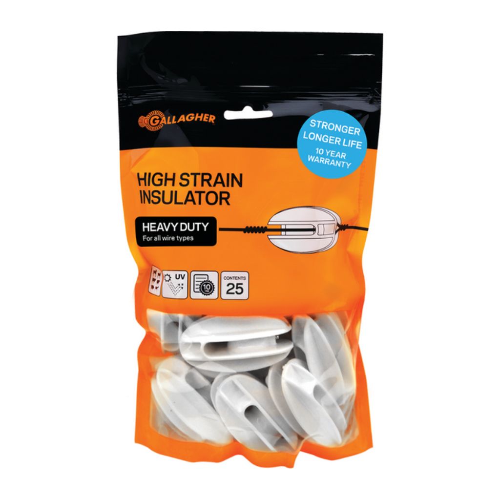 Aislador terminal blanco de la marca Gallagher. Paquete de 25 unidades.
